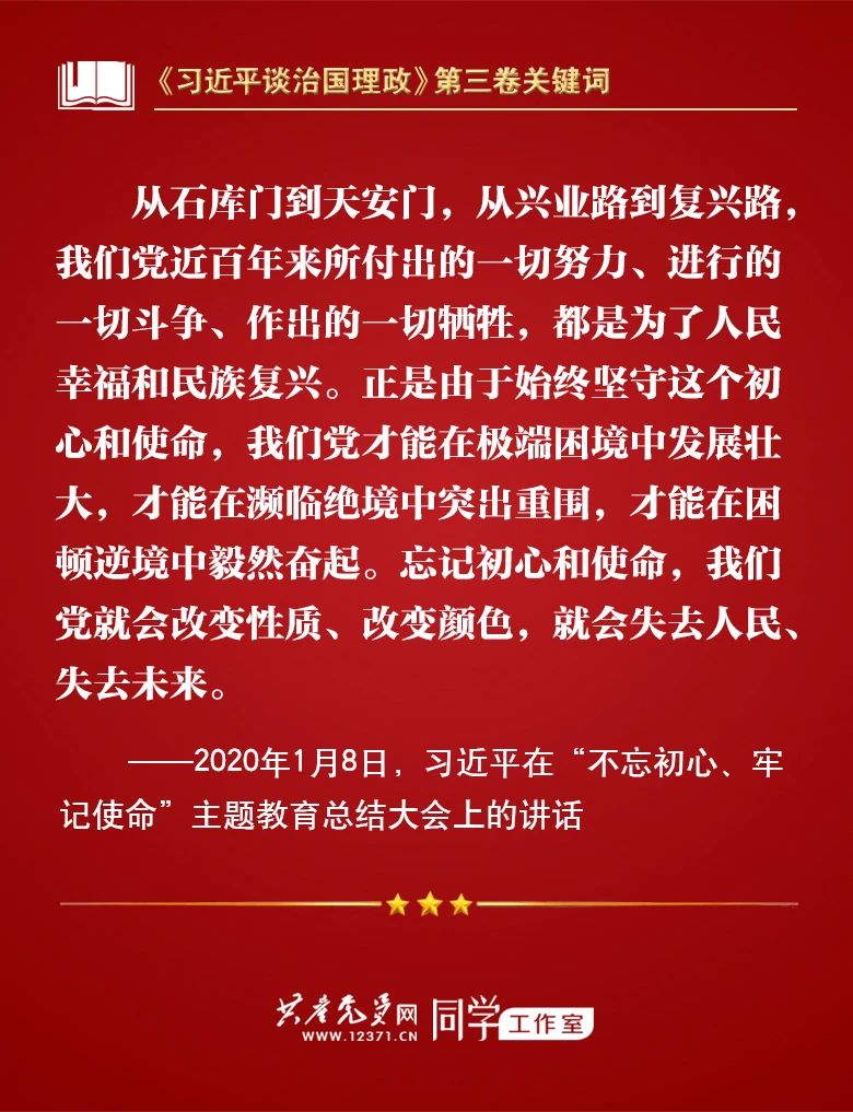 我們梳理習近平總書記部分講話,帶你學習著作中的關鍵詞。今天的關鍵詞是“不忘初心、牢記使命”。